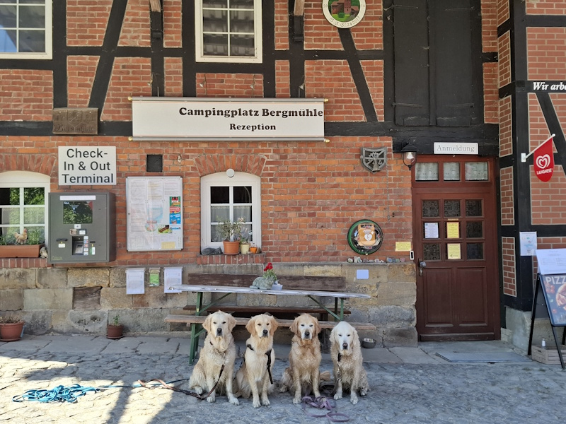 Unser erster Stopp führte uns zum Campingplatz Bergmühle in Holle, wo wir zwei entspannte Tage mitten in der Natur verbrachten. Der Platz ist herrlich naturbelassen und ruhig – genau das Richtige für einen entspannten Start in den Urlaub. Unsere Vierbeiner und wir kamen langsam im Urlaubsmodus an.