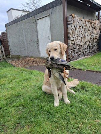 Im Anschluss wurde Navy eine Ente auf dem Feld geworfen, die als Markierung gearbeitet werden sollte. Kurz zusammengefasst: Raus, „Hallo“ sagen, aufnehmen und zurückbringen – alles problemlos.
