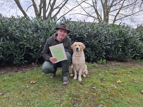 Der Höhepunkt des Tages war jedoch die Schleppe. Navy arbeitete die Spur hervorragend aus, indem sie den Anschuss selbstständig und zielstrebig verfolgte. Sie arbeitete sich durch das frisch gebrochene Gelände der Wildschweine, navigierte geschickt durch den Übergang zum Totholz und fand schließlich das Kaninchen, das sie mir freudig brachte.