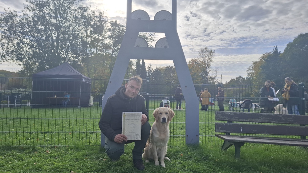 Heute waren wir in Gelsenkirchen, wo Sascha mit Navy die Begleithundeprüfung mit Schuss gelaufen ist.