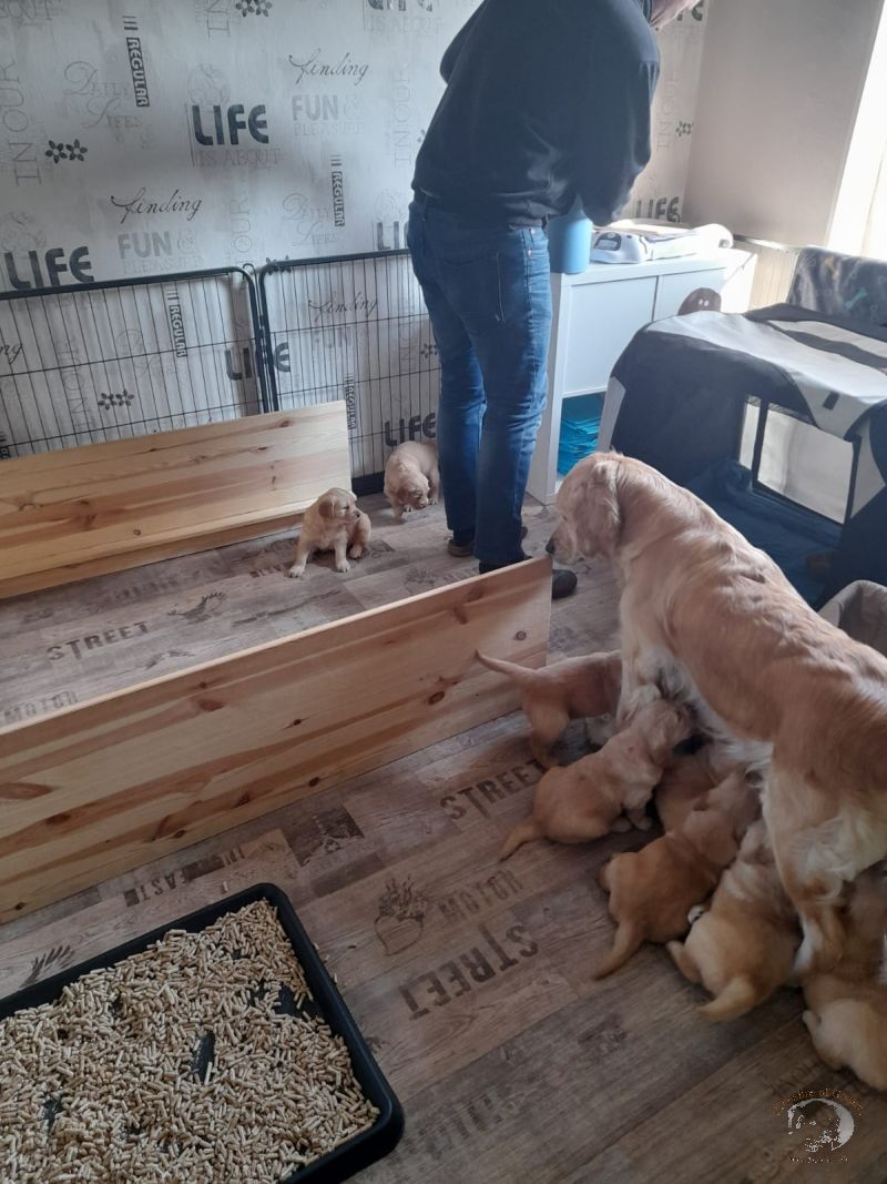 Heute haben wir die Wurfkiste abgebaut. Irgendwie meinten die Dreamliner man brauche sie nicht mehr, und man könne über die Ränder steigen. Nach der Arbeit gab es aber erstmal ein Welpenbad für den Sekretär und Haushandwerker ;-)