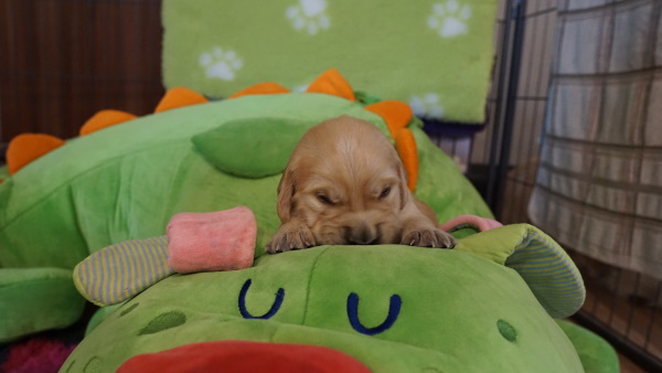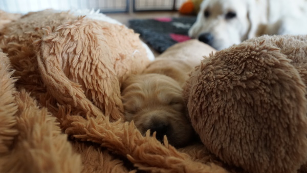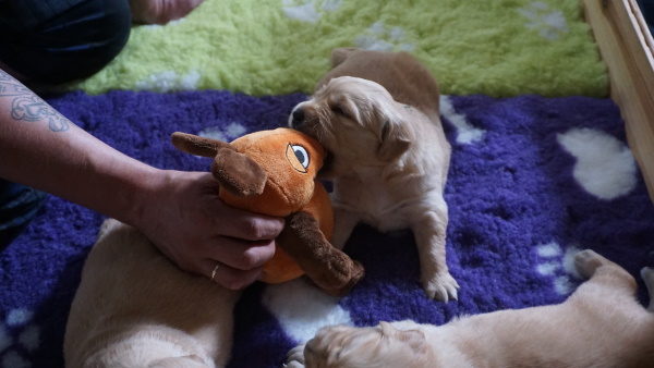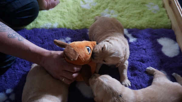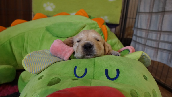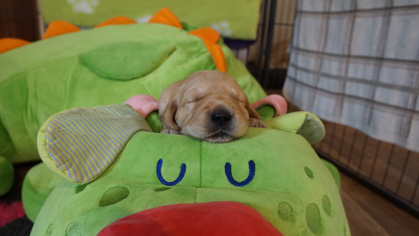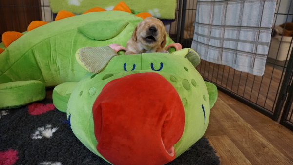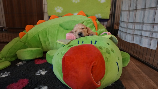 Heute ist Fridolin eingezogen. Fridolin ist ein kleiner lieber Drache der uns seit unserem C-Wurf begleitet. Die Welpis lieben es auf ihn zu klettern und vorallem zu schlafen.
