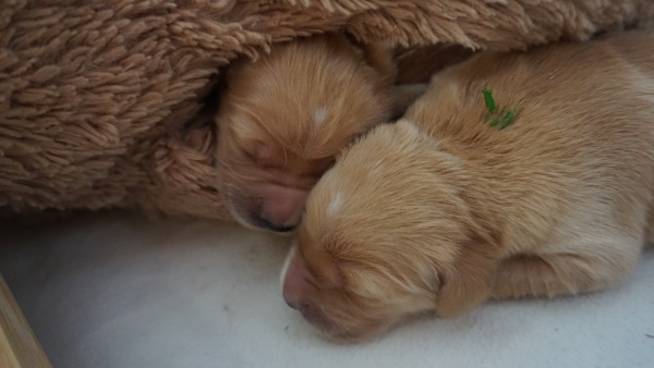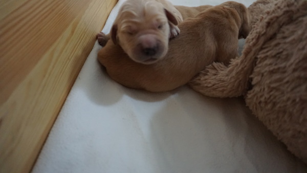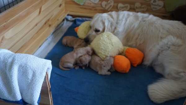 Noch herrscht Ruhe in der Wurfkiste. Das große Krabbeln und Fiepen kommt erst noch.Die Zwerge trinken fleißig und nehmen sehr gut zu. Auch Mama Tali geht es super. Sie hat sich schon gut von der Geburt erholt und genießt die Zeit mit ihren Babys.