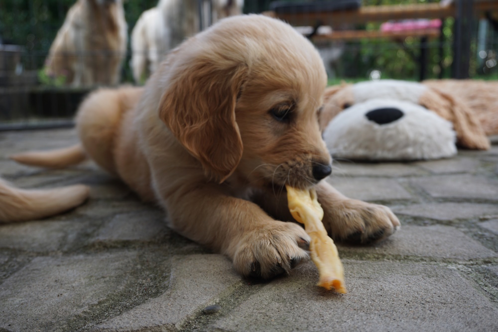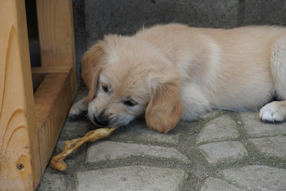 Es gab wieder Leckerschmecker. Diesmal getrocknete Kaninchenohren. Auf die Plätze, fertig, schmatz !