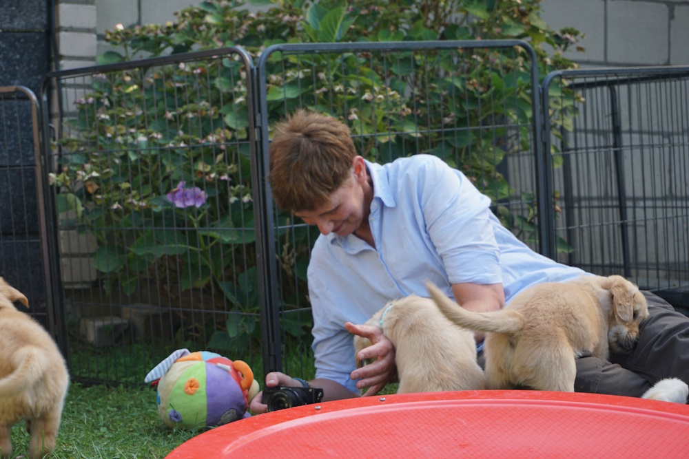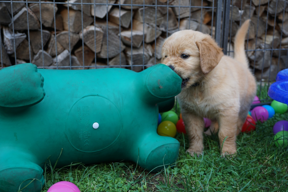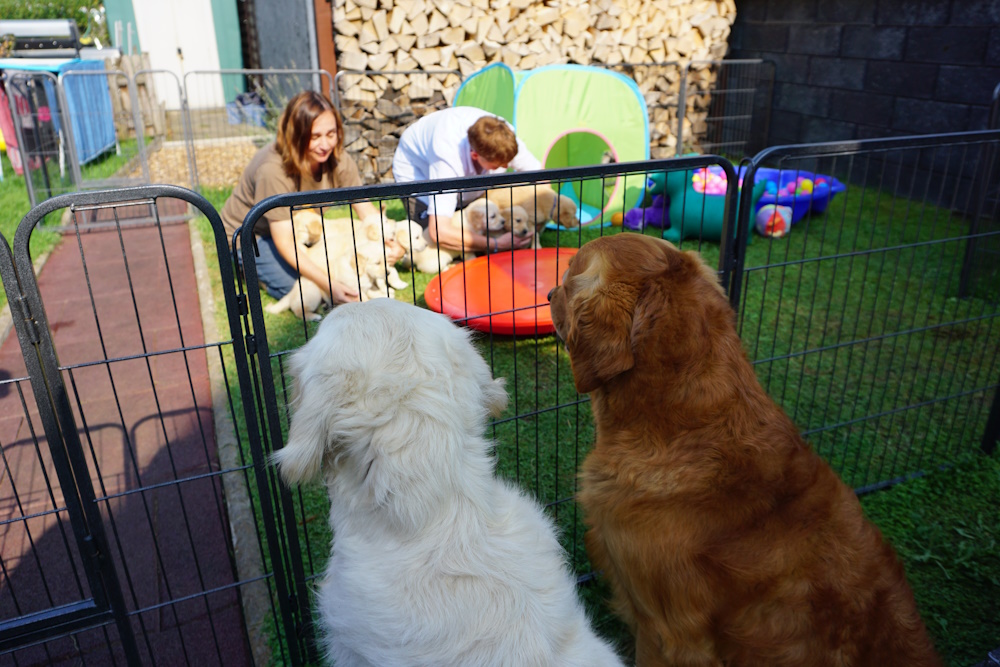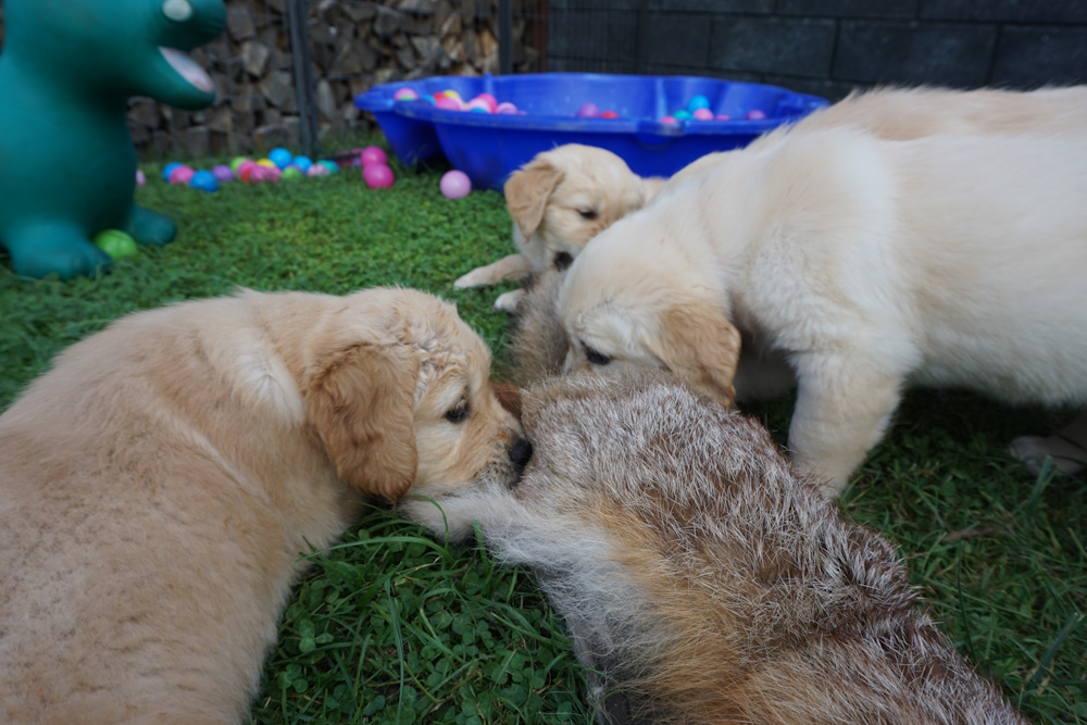 Na was ist das da in dem Welpengehege ? Der Lump war kurz da. Leider verliert er sein Fell so das er wieder ausziehen musste. Aber Spaß und Besuch hatten die Zwerge heute wieder genug.