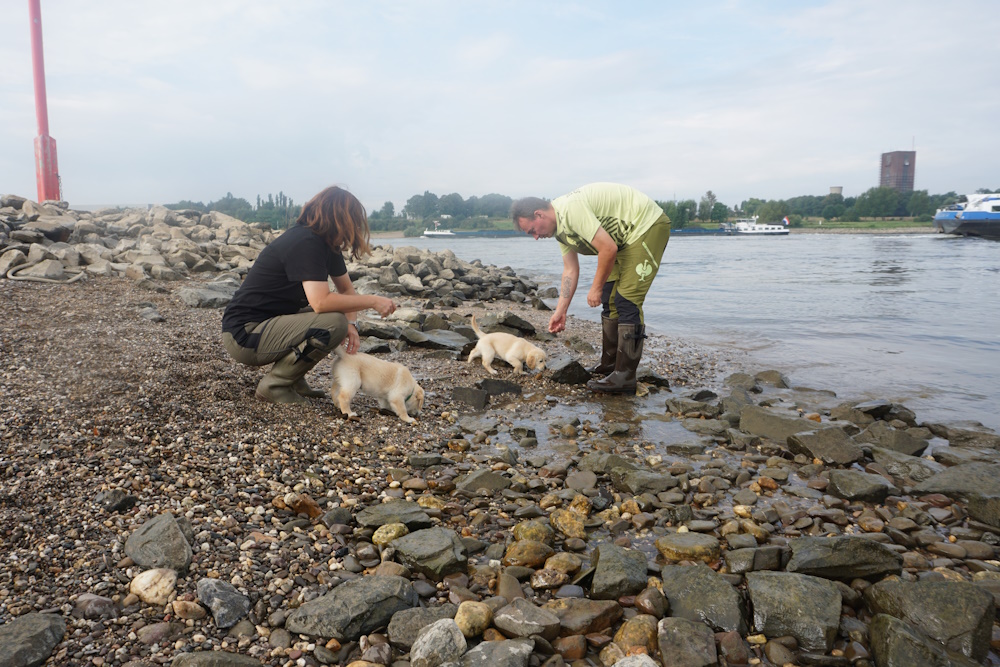 Am Dienstag waren wir mit den Welpen im Rheinvorland unterwegs. Nachdem wir auf der Wiese den ersten Dampf rausgelassen haben, haben wir uns an einer seichten Stelle an das Wasser getraut. Ganz mutig sind die Zwerge über den Kies gehoppelt und haben sich auch in das Wasser getraut. Der ein oder andere hat sogar sein Seepferdchen schon gemacht.Vielen Dank an Ulrike und Sarah für euren Einsatz und Hilfe.