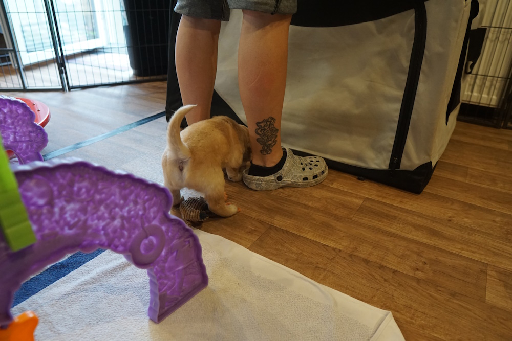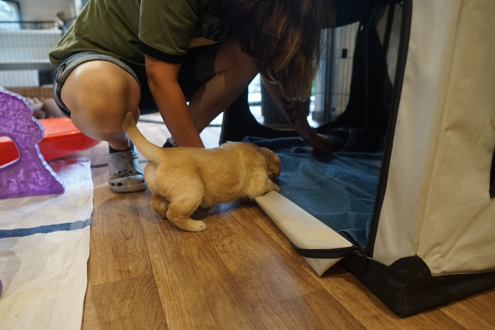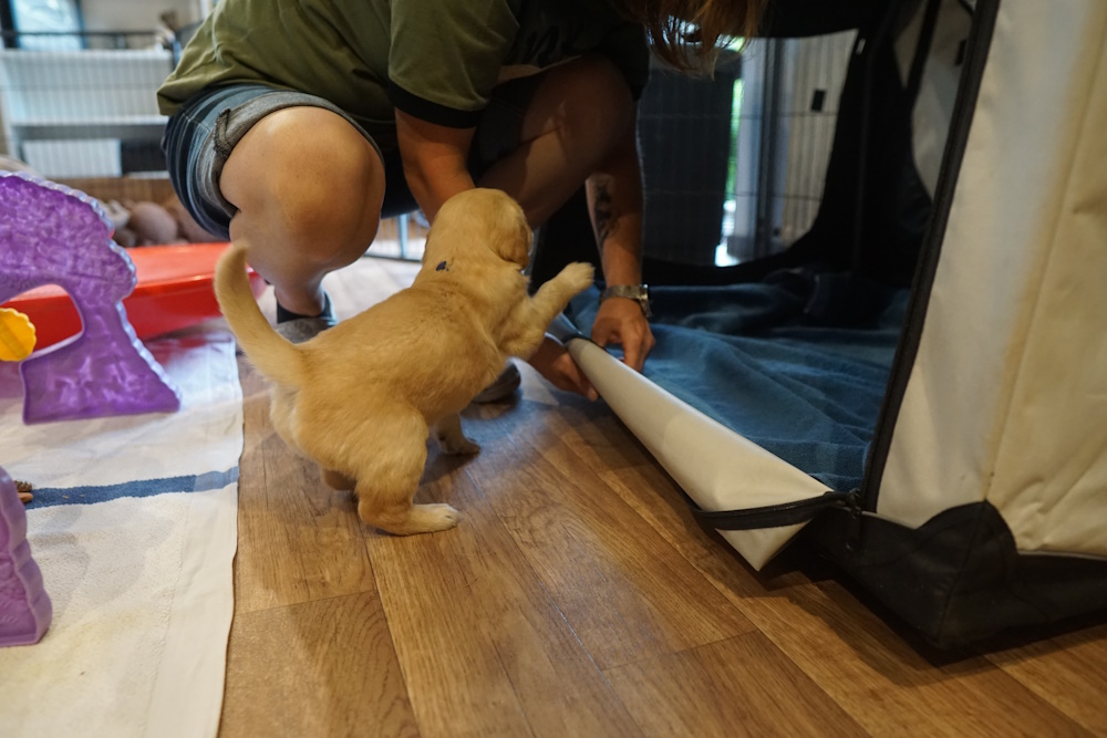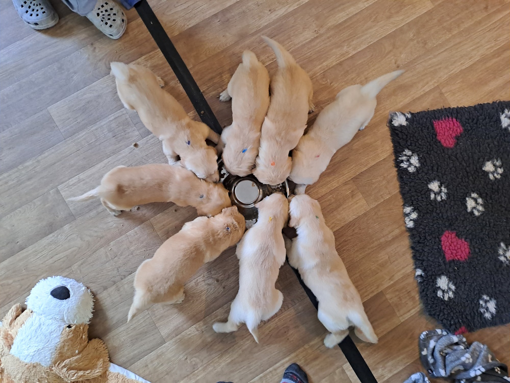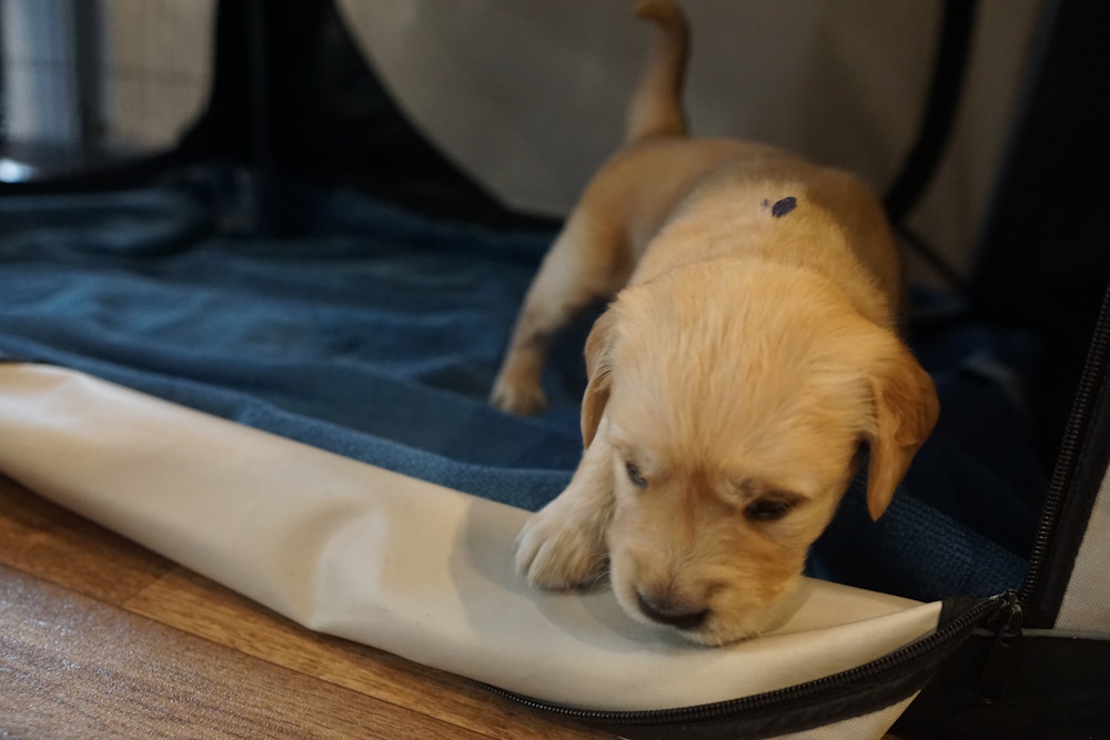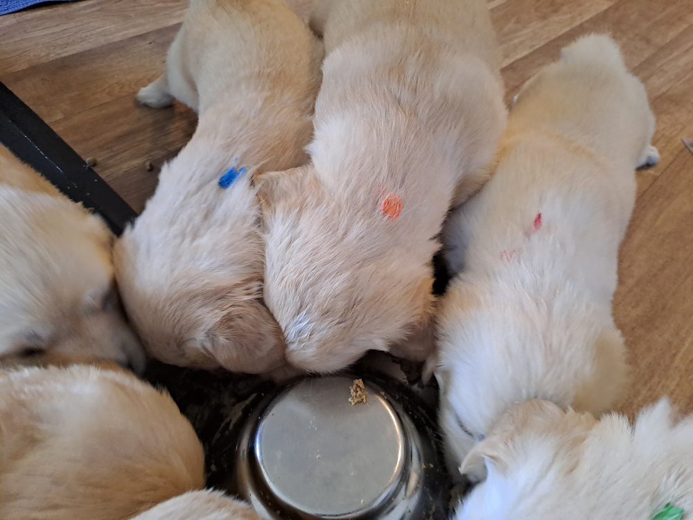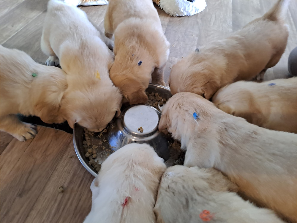 Schon seit einigen Tagen liegen die Welpen überall rum zum schlafen. Auch Nachts suchen sie sich ihren Platz. In der Wurfkiste lag meisten die Uroma Ziva oder wurde genutzt wenn wir alles geputzt haben.Deshalb haben wir die Kiste heute abgebaut und durch einen Kennel ersetzt.