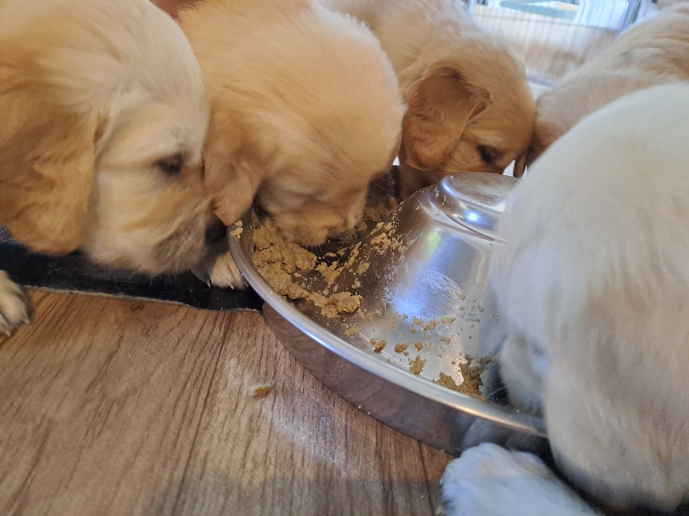 Ab heute gibt es eine dritte richtige Mahlzeit. Das eingeweichte Trockenfutter aus dem Futterring kam richtig gut an. Und die erwartetet Sauerei blieb tatsächlich aus.