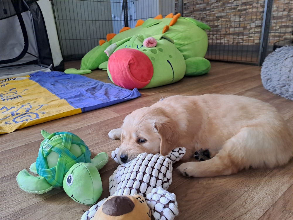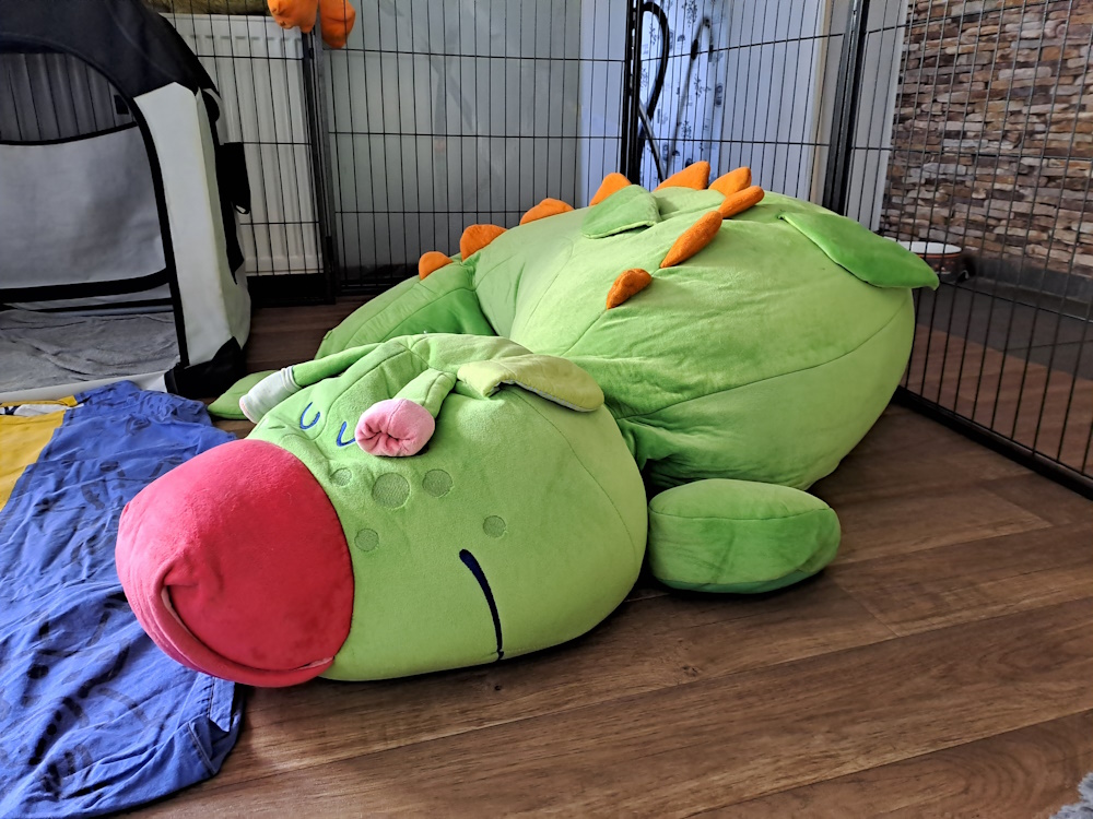 Heute ist er endlich eingezogen. Friedolin der Welpenwäcter ist wieder da :-) Unser kleiner grüner Drache begleitet uns schon seit dem C-Wurf.