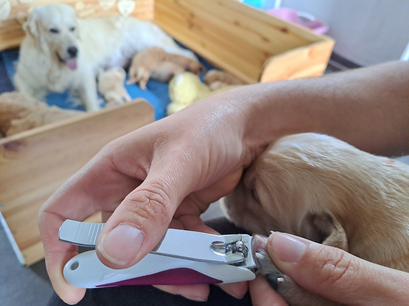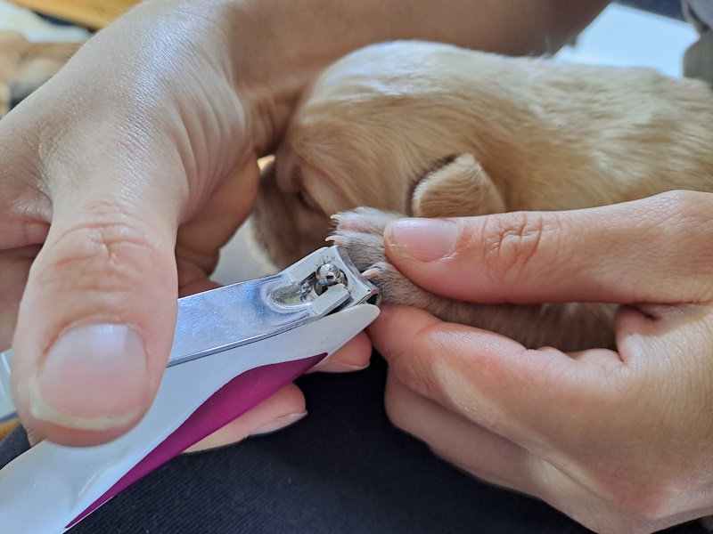 Schon ganz schön lang waren die Krallen der kleine Welpis. So mussten wir heute das erste mal den Knippser rausholen.