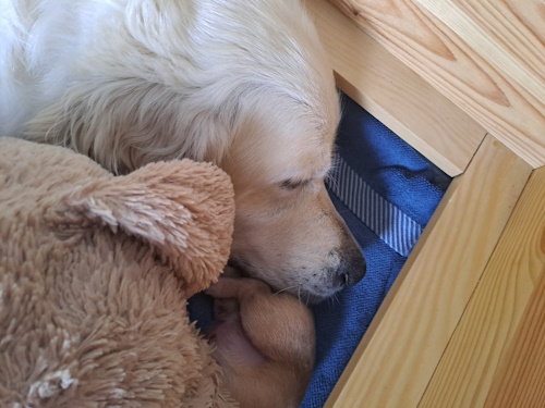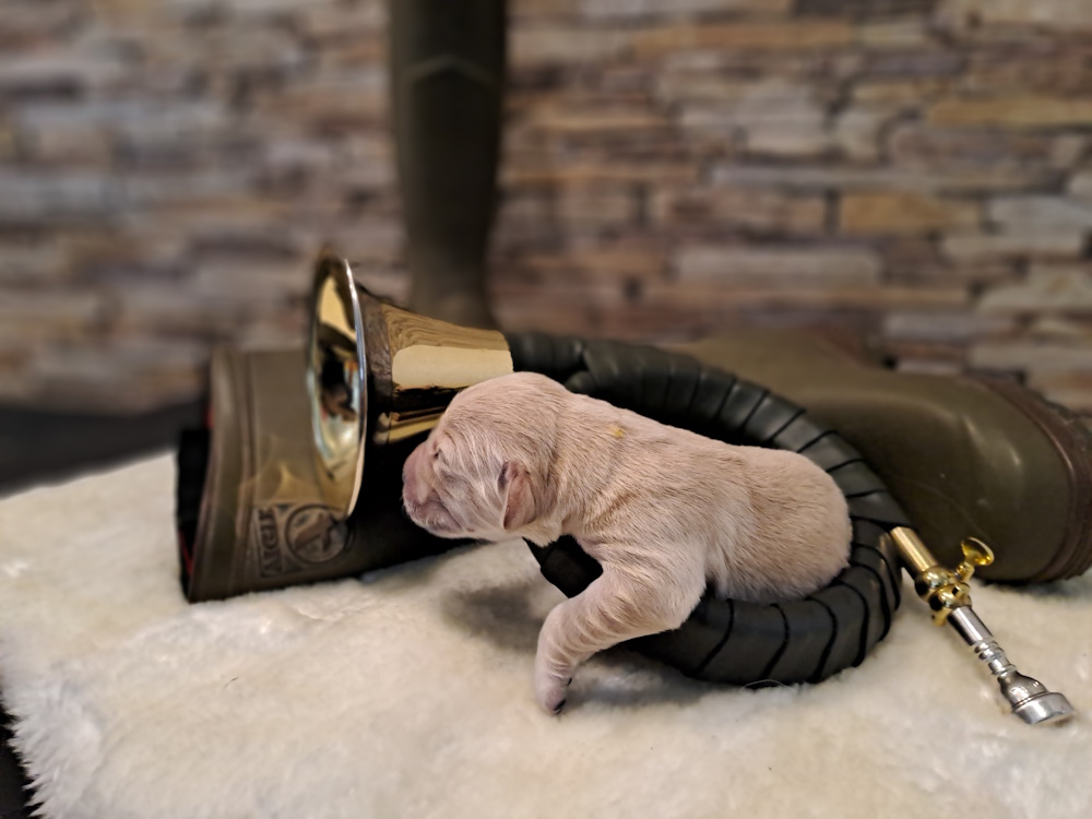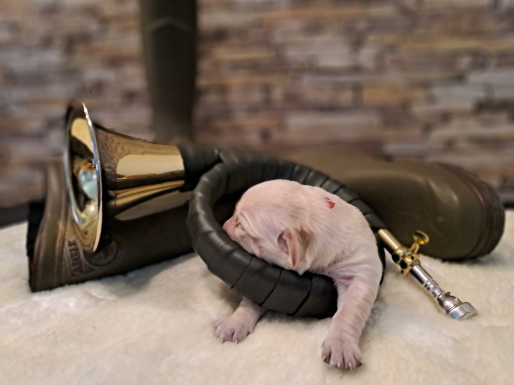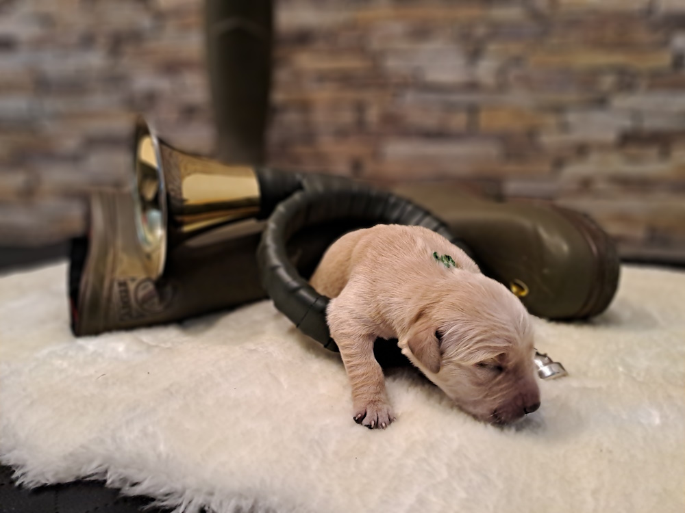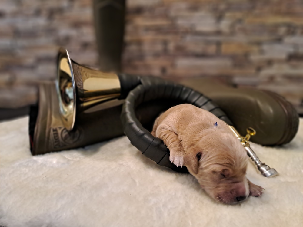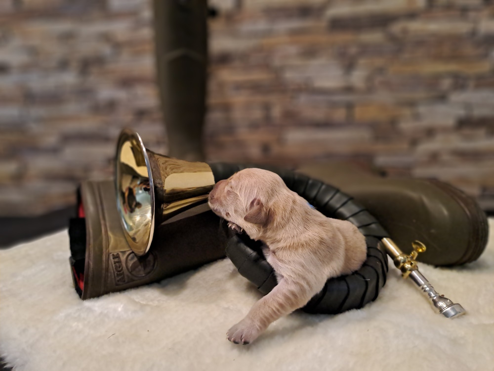Heute ist schon der dritte Tag und ein richtiger Jagdhund darf schonmal das Jagdhorn kennenlernen.