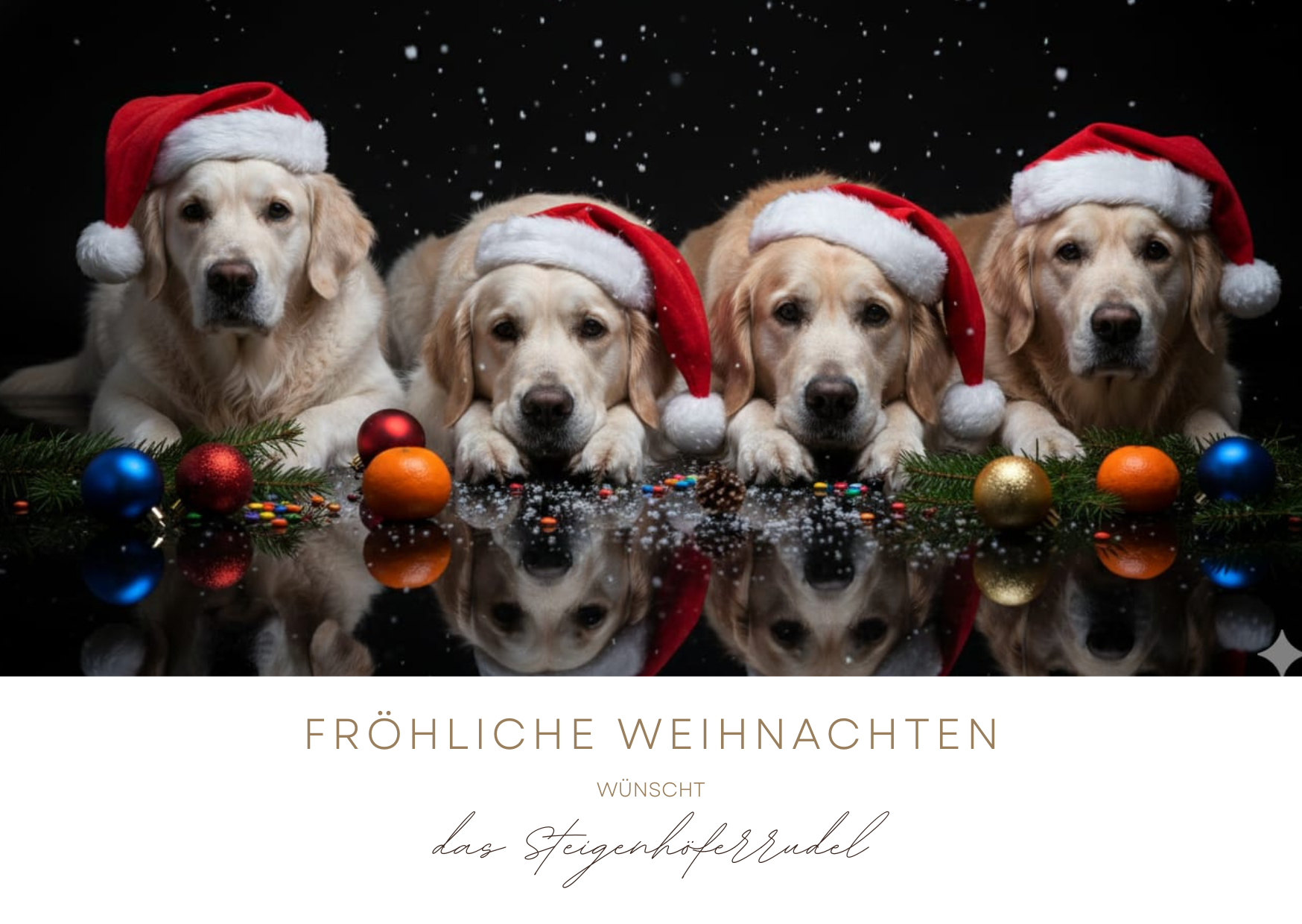 Wir wünschen allen Freunden und Bekannten eine wunderschöne und besinnliche Weihnachtszeit. Mögen die kommenden Tage geprägt sein von Ruhe, Herzlichkeit und wertvollen Momenten im Kreis der Menschen die euch wichtig sind. Auch unser Rudel und wir blicken dankbar auf das vergangene Jahr zurück und genießen diese besondere Zeit voller Nähe, Wärme und gemeinsamer Augenblicke. Wir hoffen dass Weihnachten euch Zeit zum Innehalten schenkt, neue Kraft gibt und viele schöne Erinnerungen entstehen lässt. Für das neue Jahr wünschen wir Gesundheit, Glück und viele Momente die von Herzen kommen.