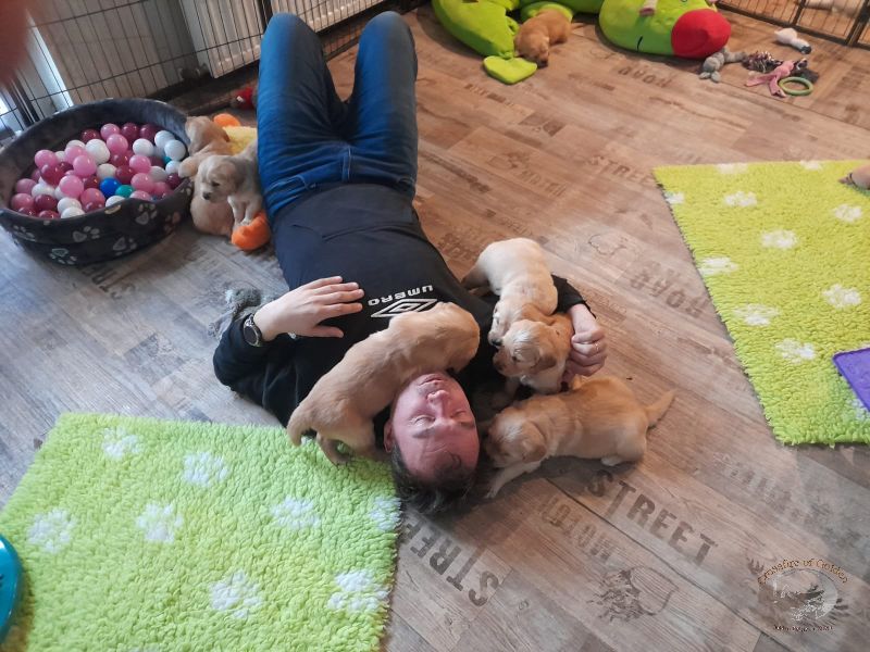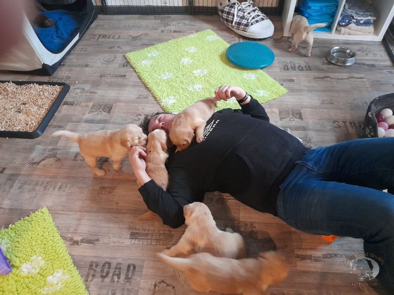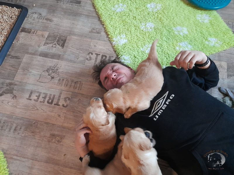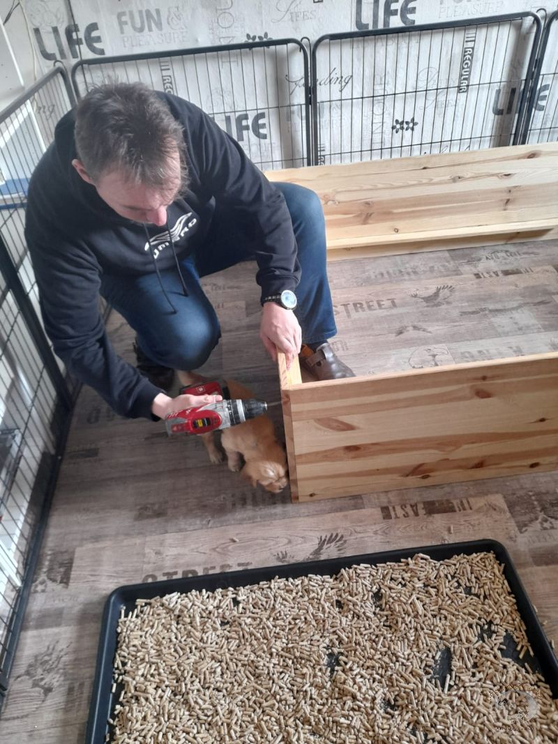 Heute haben wir die Wurfkiste abgebaut. Irgendwie meinten die Dreamliner man brauche sie nicht mehr, und man könne über die Ränder steigen. Nach der Arbeit gab es aber erstmal ein Welpenbad für den Sekretär und Haushandwerker ;-)