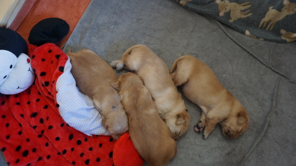 Wachsen tut man am besten im Schlaf ;-)heute wiegen alle vier um die 1600 gr. Mama´s Milch schmeckt immer noch richtig gut ... mhhhh