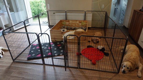 So langsam kommt Leben in die Bude. Die kleinen Evolution´s fangen an zu krabbeln. Sie krabbeln der Mama hinterer und fangen an die Welt zu erkunden. Daher heiß es heute, wir fangen schonmal an etwas umzubauen.Noch nicht den ganz großen Auslauf, aber schon mal etwas mehr, damit sich die Zwerge an den Untergrund etc. gewöhnen können.
