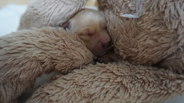 Noch herrscht Ruhe in der Wurfkiste. Das große Krabbeln und Fiepen kommt erst noch.Die Zwerge trinken fleißig und nehmen sehr gut zu. Auch Mama Tali geht es super. Sie hat sich schon gut von der Geburt erholt und genießt die Zeit mit ihren Babys.