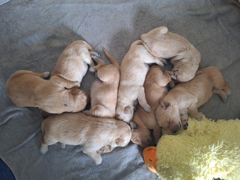 Wie schnell die Zeit vergeht. Nun sind die Zwerge schon eine Woche alt. Noch ist es ruhig in der Welpenbox, das wird sich aber in den nächsten Tagen mit dem öffnene der Augen und Ohren ändern.