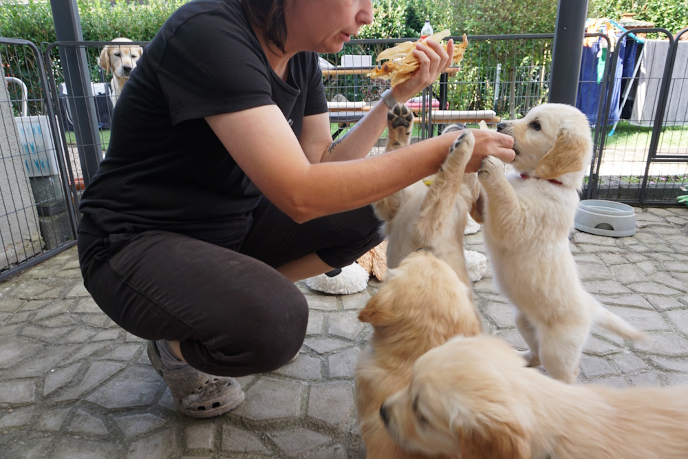 Es gab wieder Leckerschmecker. Diesmal getrocknete Kaninchenohren. Auf die Plätze, fertig, schmatz !