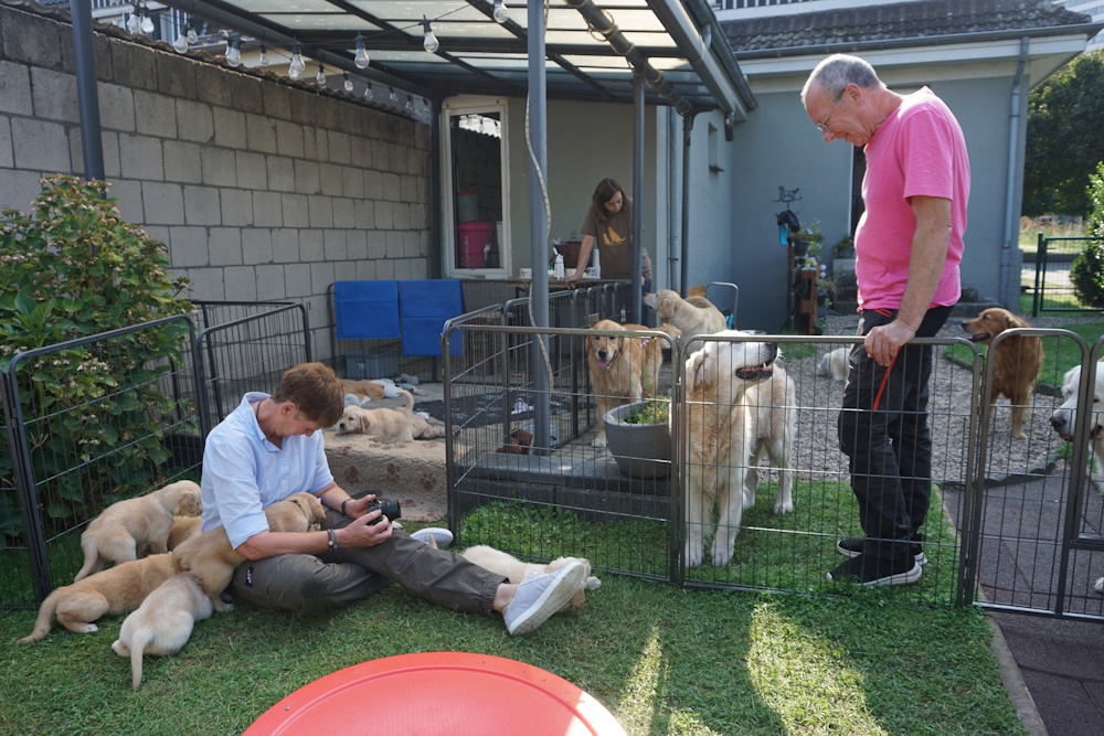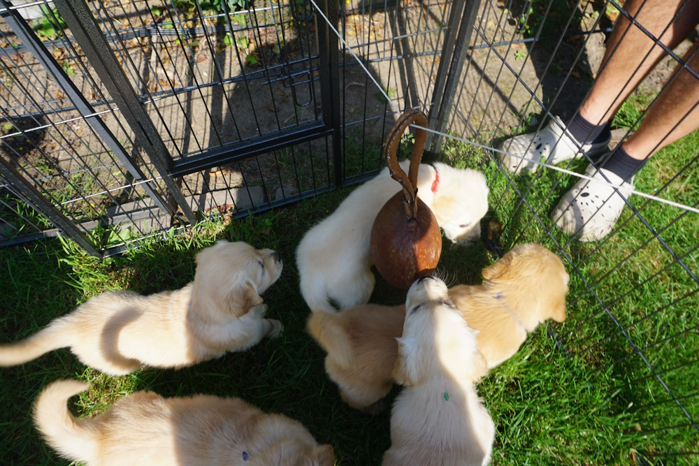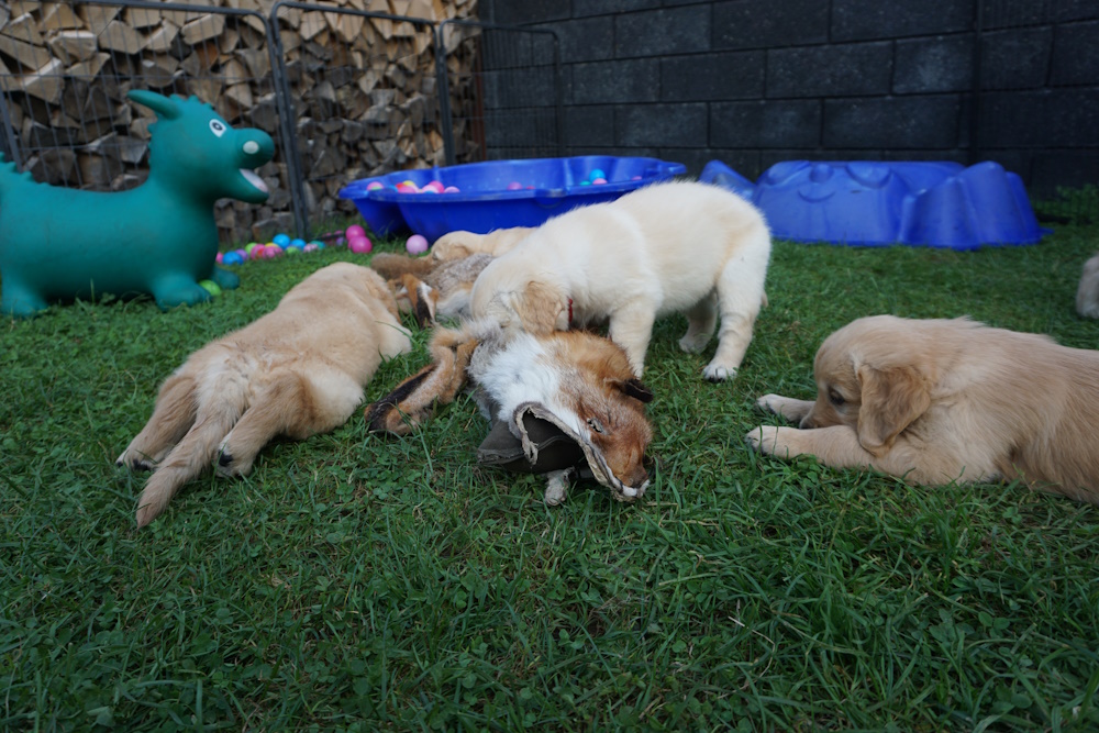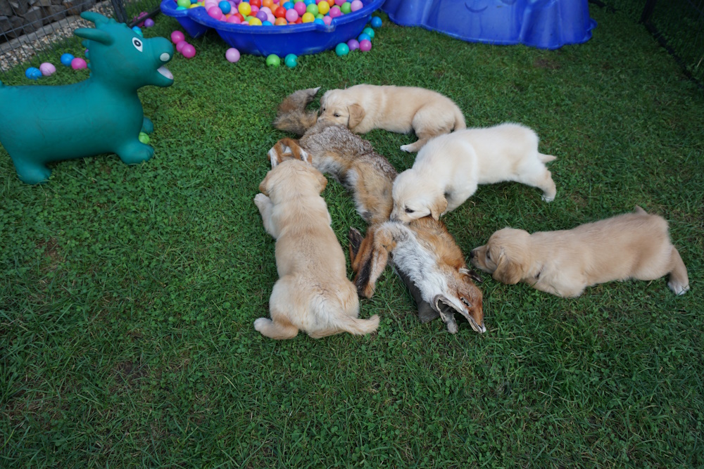 Na was ist das da in dem Welpengehege ? Der Lump war kurz da. Leider verliert er sein Fell so das er wieder ausziehen musste. Aber Spaß und Besuch hatten die Zwerge heute wieder genug.